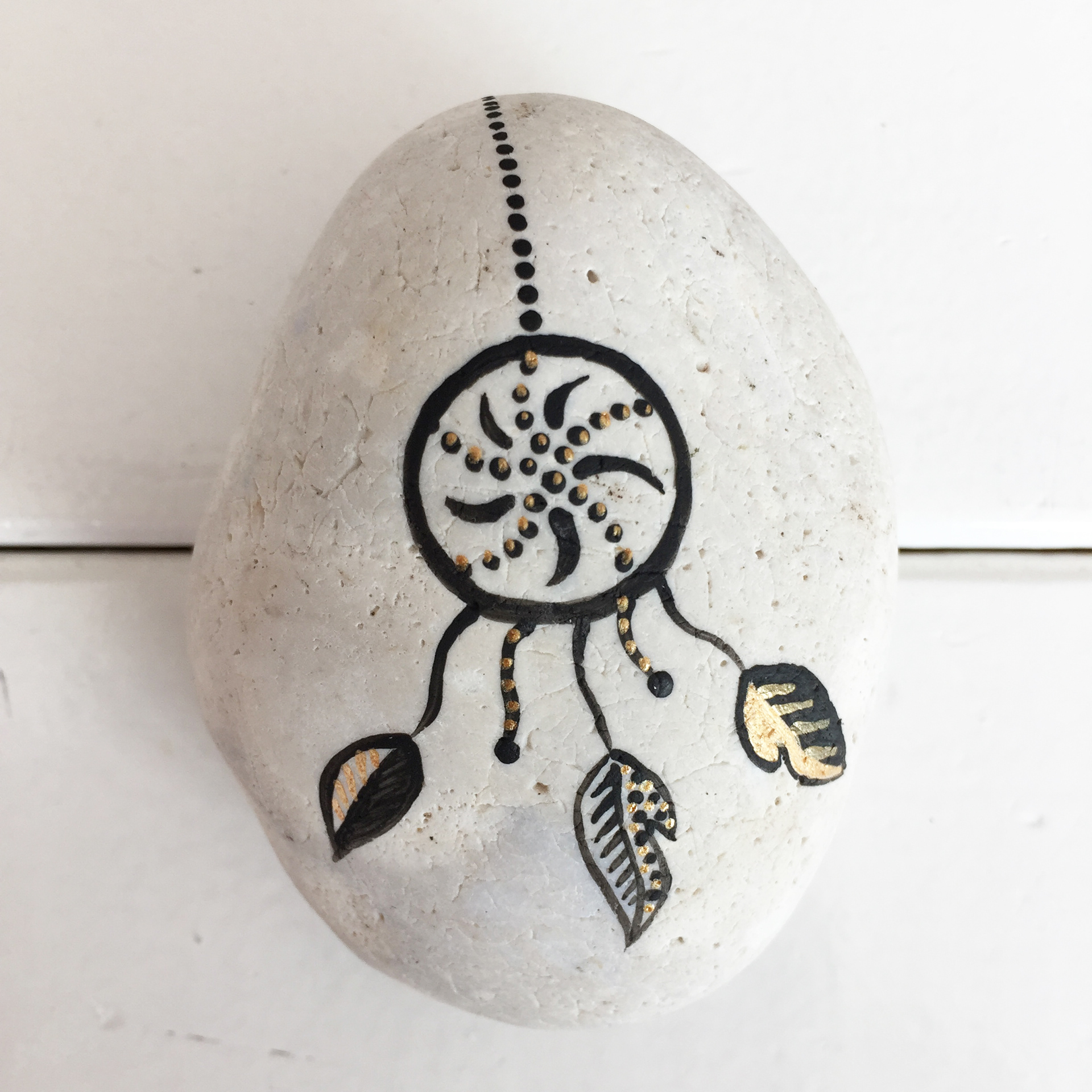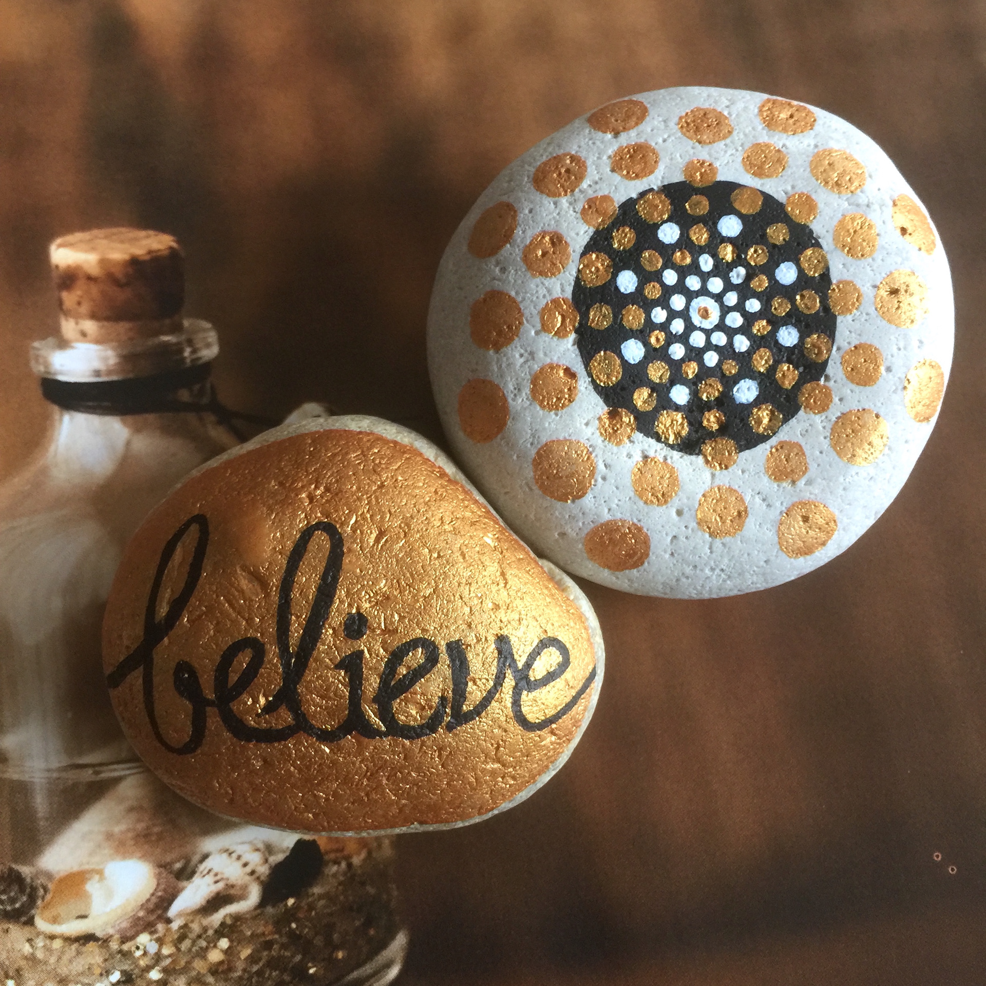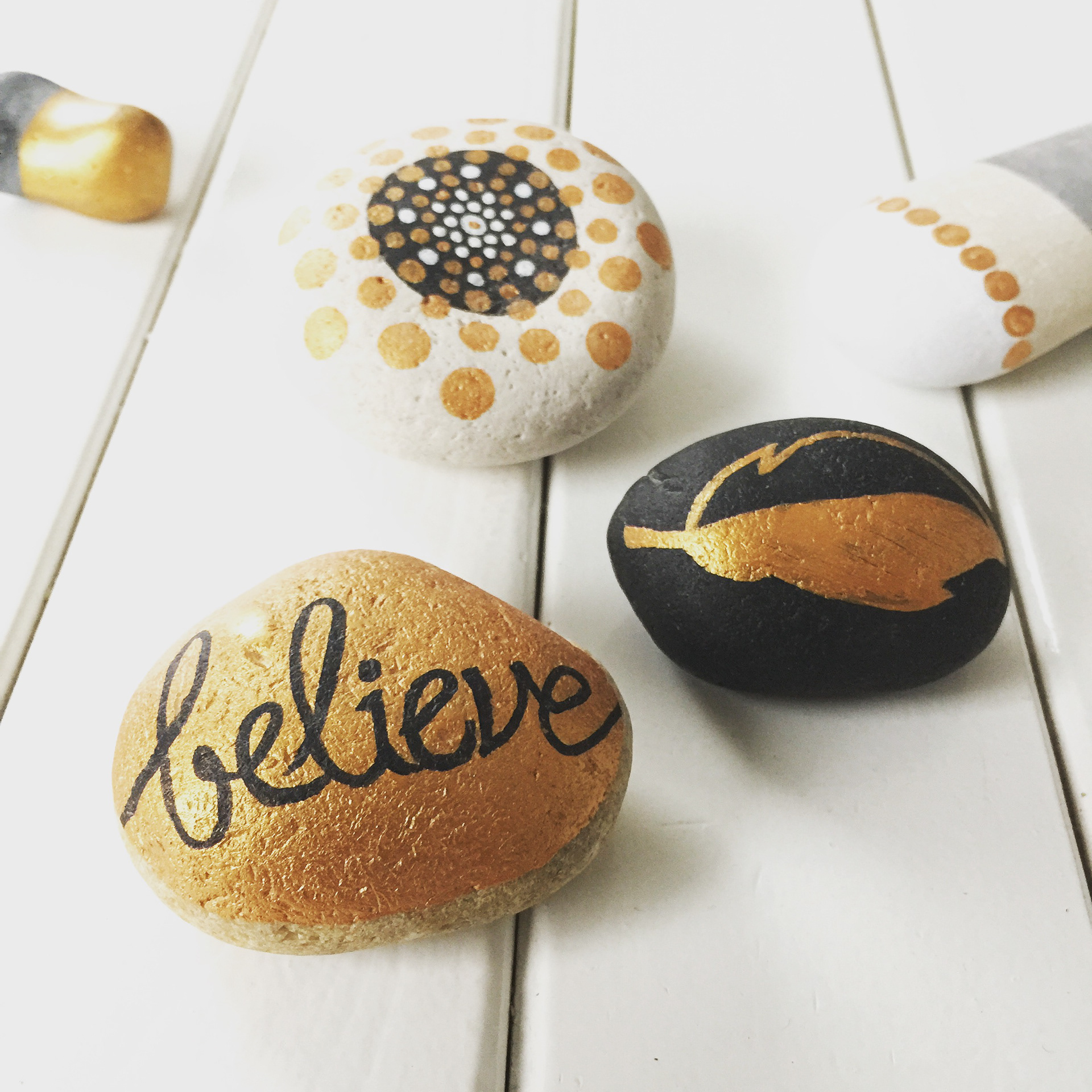 Schilderen in het klein is ontspannend en overzichtelijk, werkt bijna meditatief en je kunt er al je creativiteit in kwijt! Heerlijk, dat is ook de reden dat ik graag stenen en keien uit de natuur beschilderd met mandala’s, mooie woorden of korte quotes, stippen of strepen, natuurlijke vormen als veren blaadjes en bloemen, etc. De stenen waarop ik schilder komen van de Franse kustlijn.
