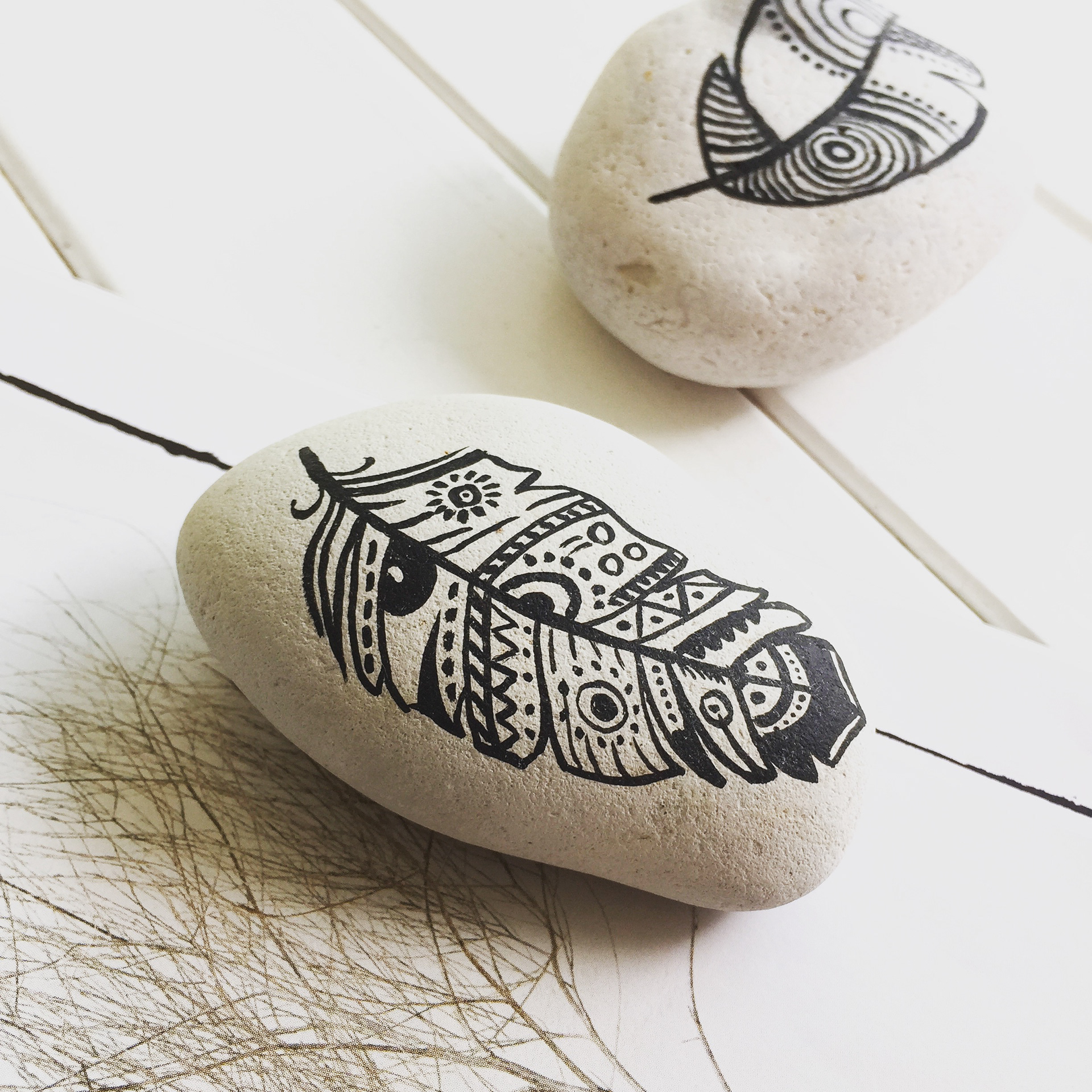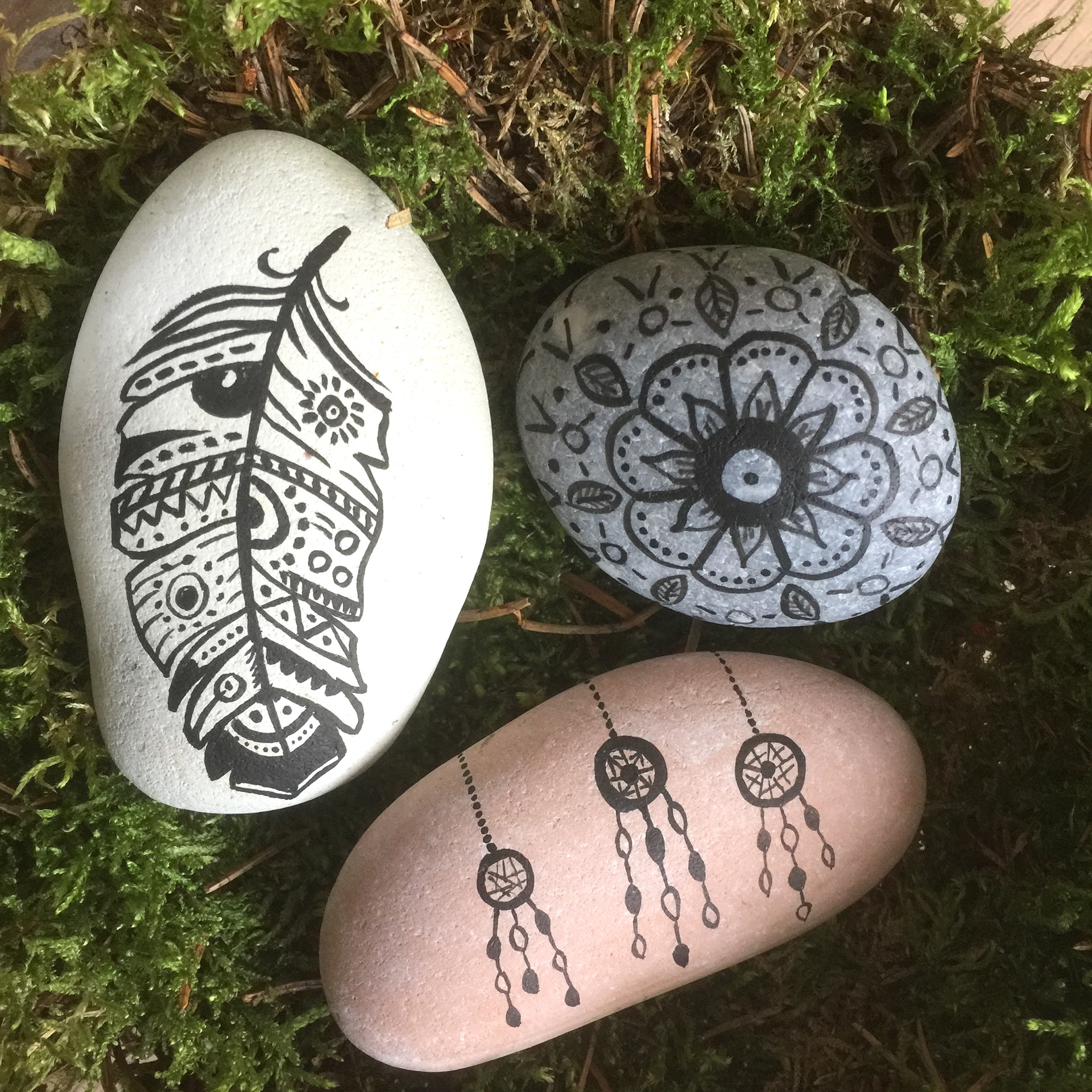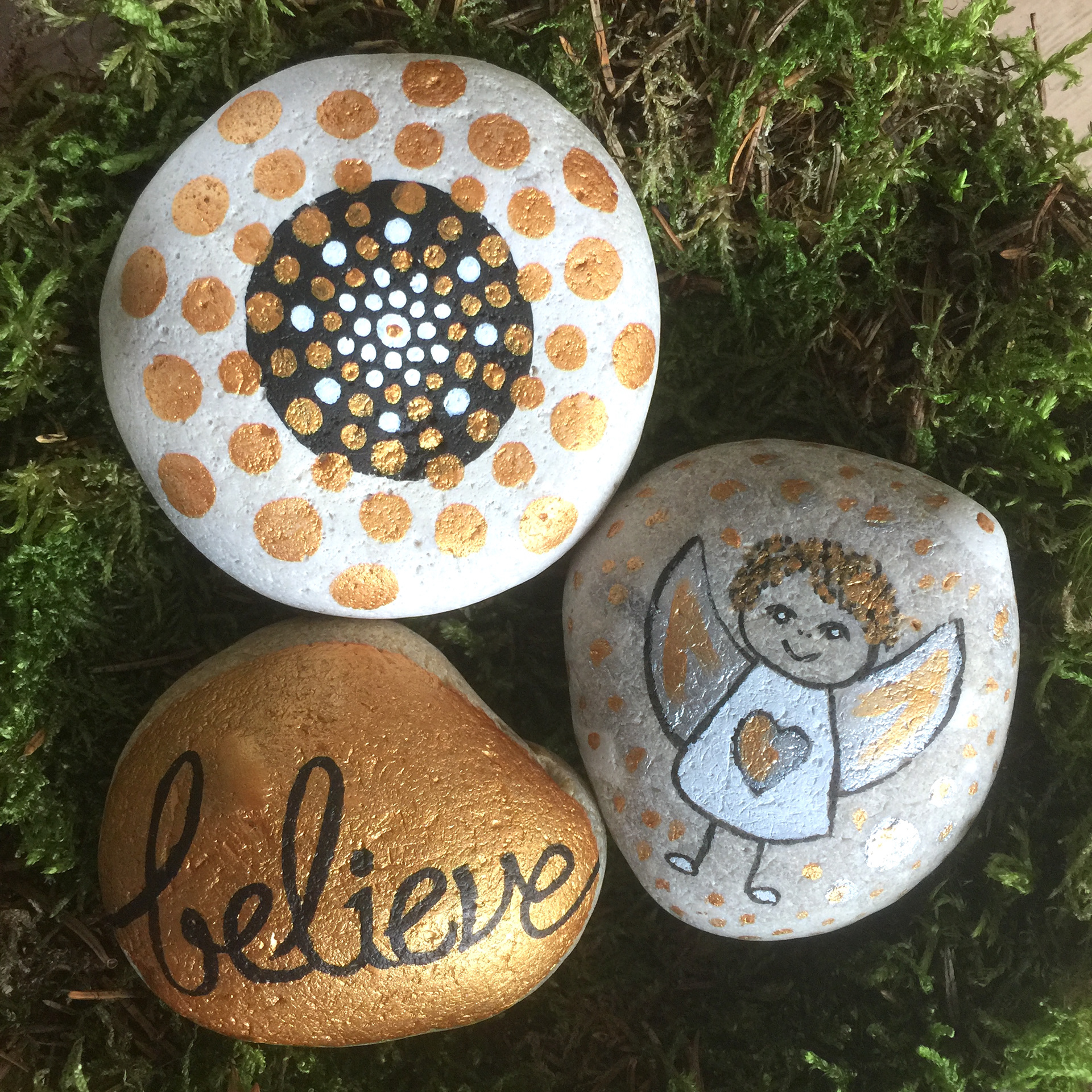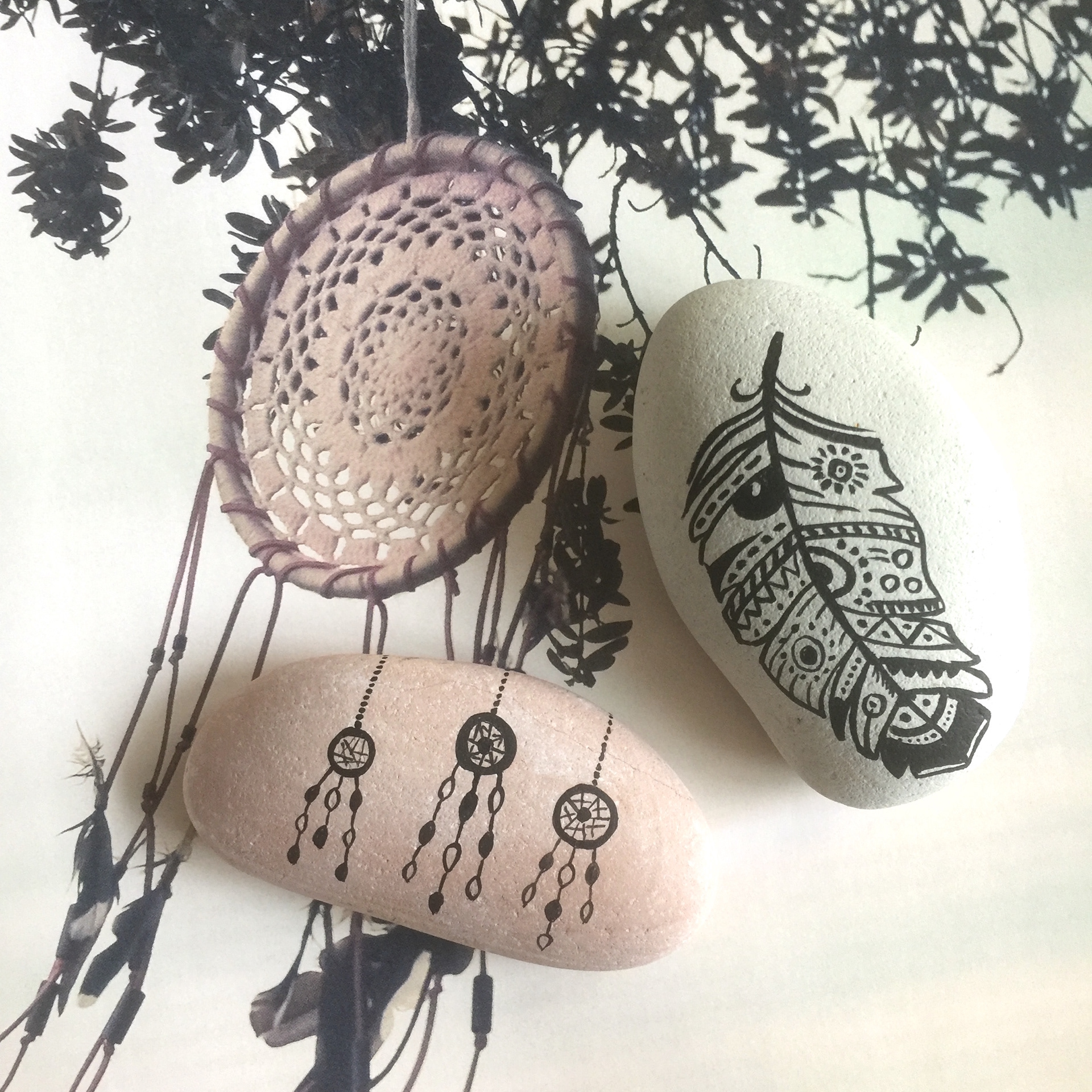 Schilderen in het klein is ontspannend en overzichtelijk, werkt bijna meditatief en je kunt er al je creativiteit in kwijt! Heerlijk, dat is ook de reden dat ik graag stenen en keien uit de natuur beschilderd met mandala’s, mooie woorden of korte quotes, stippen of strepen, natuurlijke vormen als veren blaadjes en bloemen, etc. De stenen waarop ik schilder komen van de Franse kustlijn.
